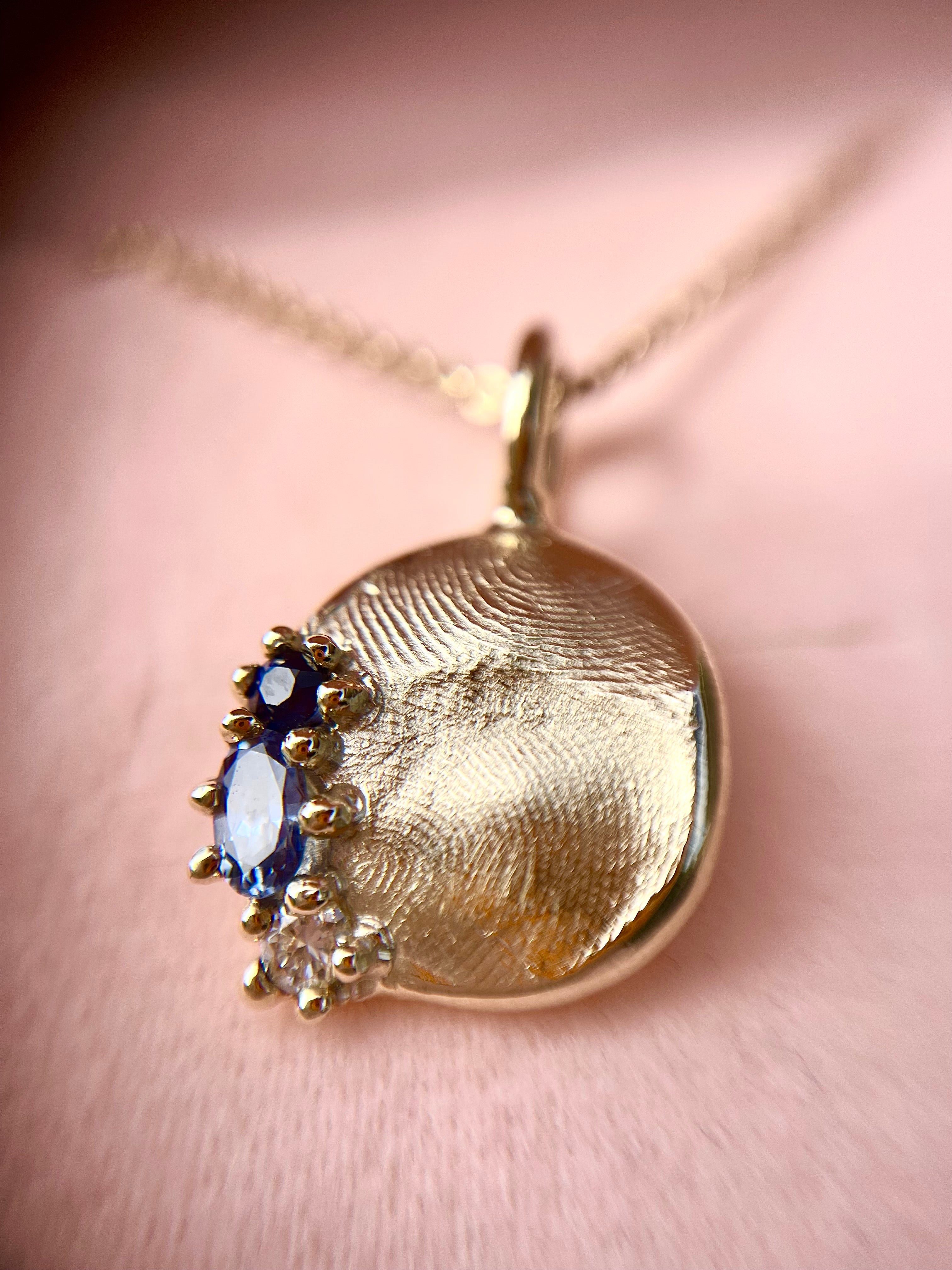 Gemstone + Fingerprint Pendant - Sterling Silver or 9ct Gold - Impression Kit + Necklace