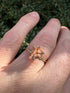 This ring has been hand carved from wax, cast in gold and has a stunning rose cut peach tourmaline set in the centre.